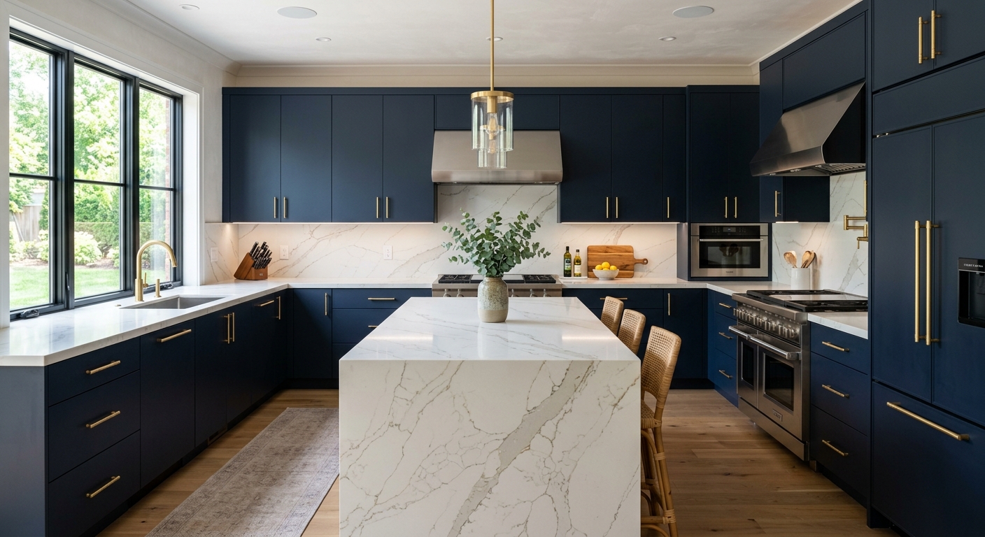 Our contractors work with top cabinet lines — KraftMaid, Merillat, Waypoint, Medallion — and top countertop brands. All work backed by a written workmanship warranty.