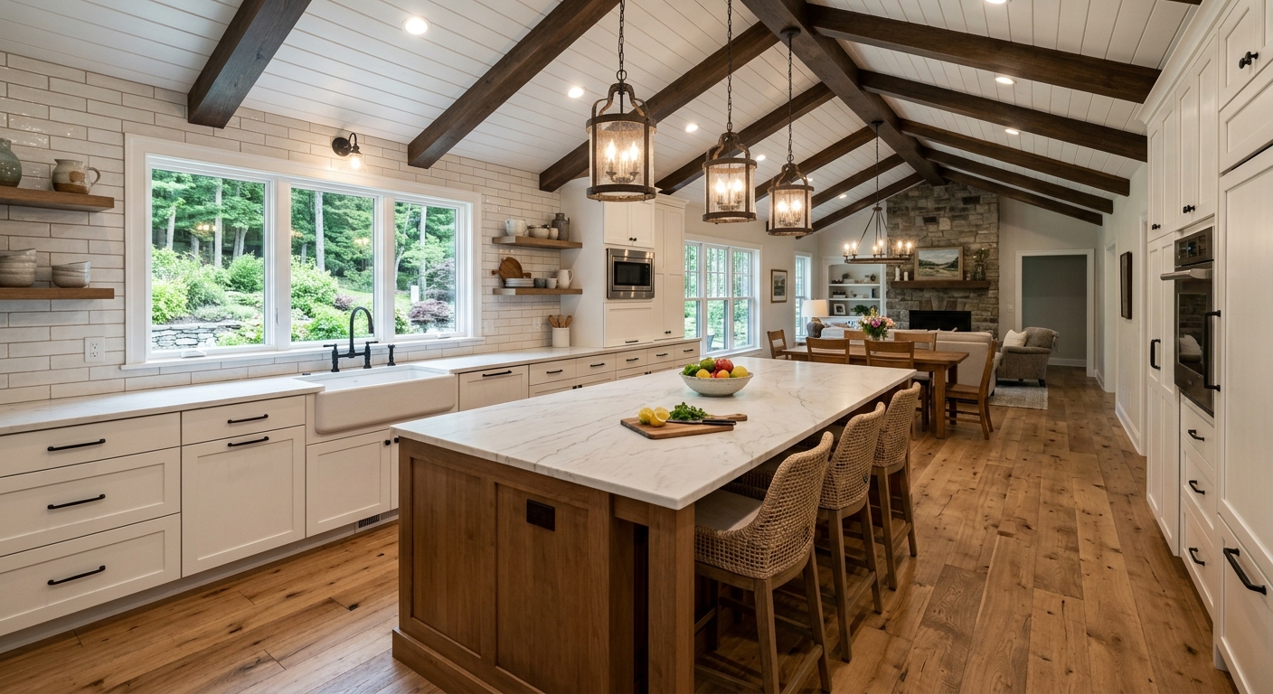 Custom kitchen island design and installation for Ridley homes. Our contractors handle structural considerations, electrical for outlets and pendant lights, seating overhangs, and storage configuration. Permits included where required.