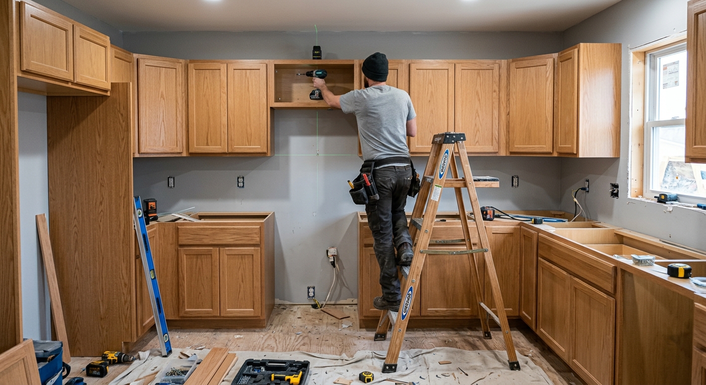 Stock, semi-custom and custom cabinet installation by licensed Springfield kitchen contractors. We carry and install top brands — KraftMaid, Merillat, Waypoint and more. Proper leveling, shimming, crown molding and hardware included.